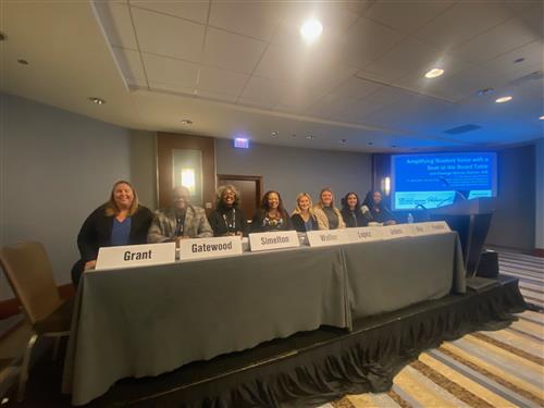 The panel discussion was titled “Amplifying Student Voice with a Seat at the Board Table” which was offered as a breakout session at the 2022 Joint Annual Conference. The session was full, standing-room only, attended by board of education members and school leaders from districts around the state.