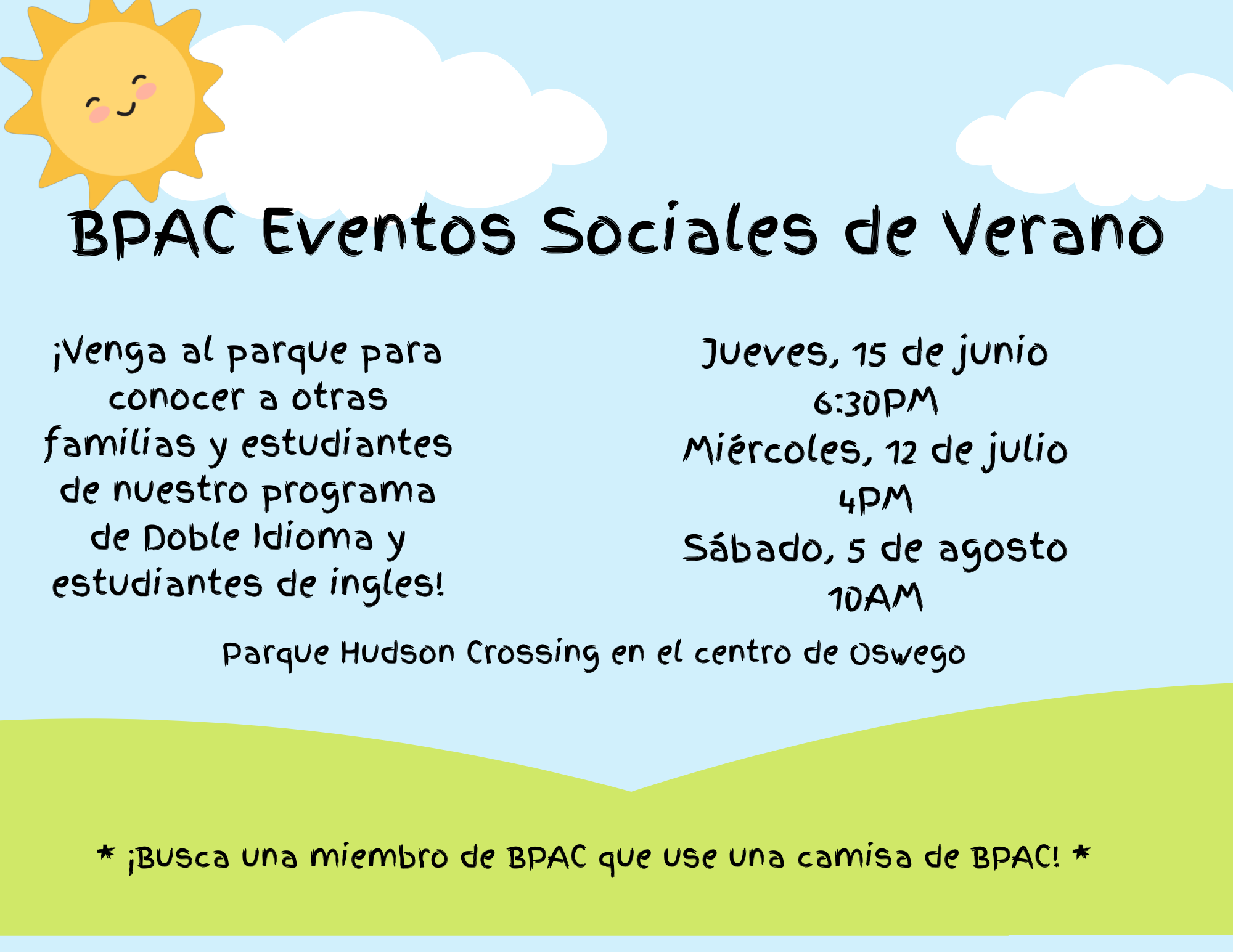 BPAC Eventos Sociales de Verano - 15 de junio, 6:30pm @ Parque Hudson Crossing